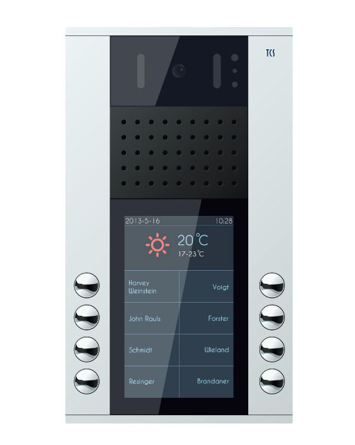 AID50采用精致而端庄的铝合金外壳,并应用大屏作电子姓名牌以显示更多户主信息、实现更多信息发布与互动,演绎出艺术与科技的完美结合。